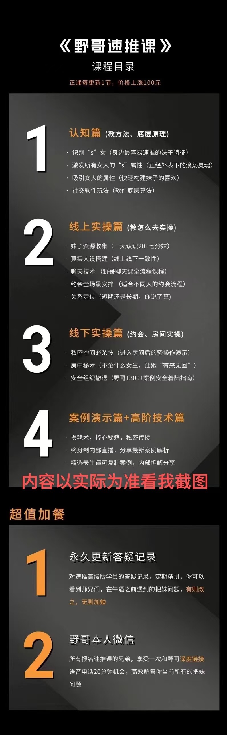 阿姆网课 情感课堂 男生情感 2025-04-24 野哥《速推.私教课》 野哥《速推.私教课》内容以速推课为主,私教答疑课为辅(全网唯一各种情况各种问题的答疑录制课 录制最多学员提的问题) 野哥 所有课程内容从网络收集整理,如有侵权请联系微信:70075683 删除阿姆网课众筹平台-百度网盘下载 » 野哥《速推.私教课》